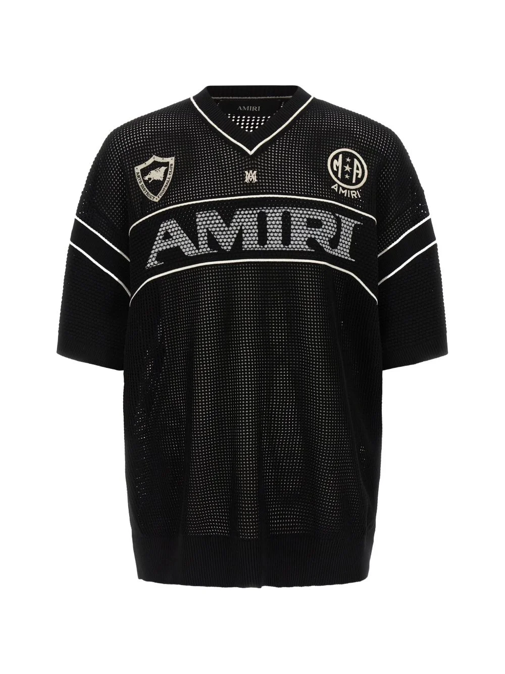 Amiri Sport embroidered V-neck T-shirt Highlights - Black - Mesh knit - Embroidery - V-neck - Dropped shoulders Made in Italy Composition Viscose 70%, Polyester 30% Washing instructions Read Manufacturer Guidelines