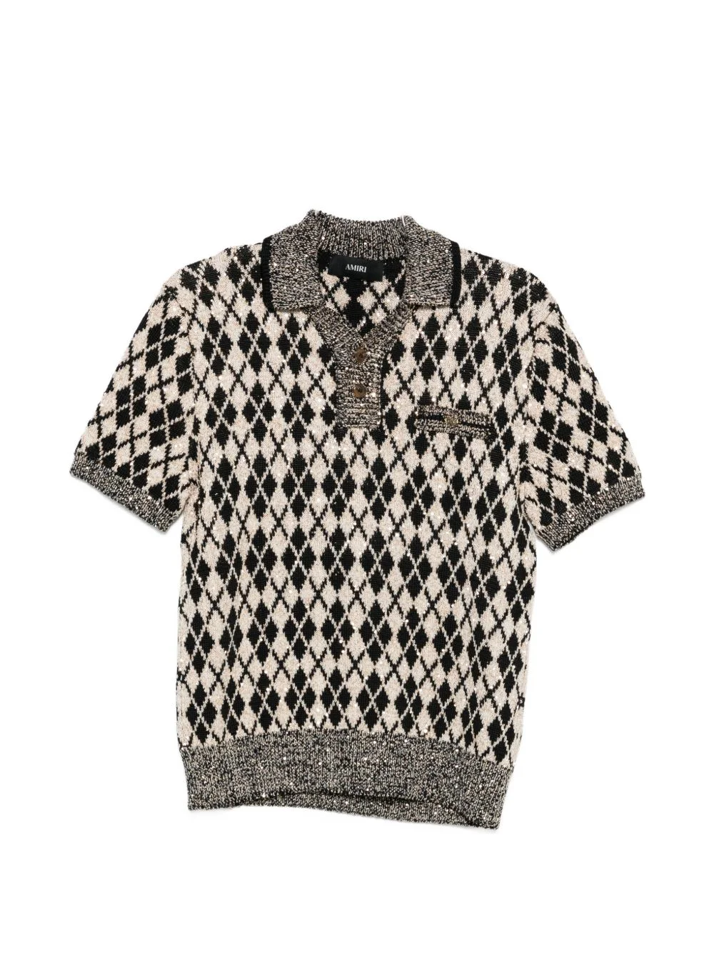 argyle short-sleeve polo shirt Highlights - Black and beige - Argyle pattern - Short sleeves - Button fastening - Ribbed trims Made in Italy Composition Polyamide 55%, Viscose 40%, Polyester 5% Washing instructions Hand Wash