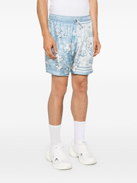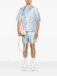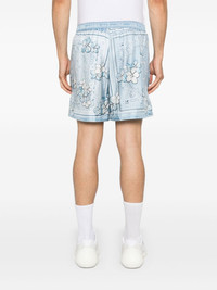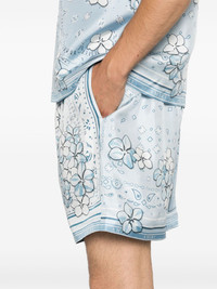 Bandana floral silk shorts Highlights - Cerulean blue/white - Silk - Twill weave - Bandana print - Floral print - Elasticated waistband - Above-knee length - Drawstring fastening waist Made in Italy Composition Silk 100% SIZE & FIT Model measurements Height 6 ft 1 in(1.86 m) Bust/Chest 37.4 in(95 cm) Hips 36.22 in(92 cm) Waist 29.52 in(75 cm) FittingInformation Designed for relaxed fit, offering a comfortable loose fit over the leg The elasticated waist allows for a comfortable fit Made from a midweight non-stretch fabric This piece fits true to size – take your usual size