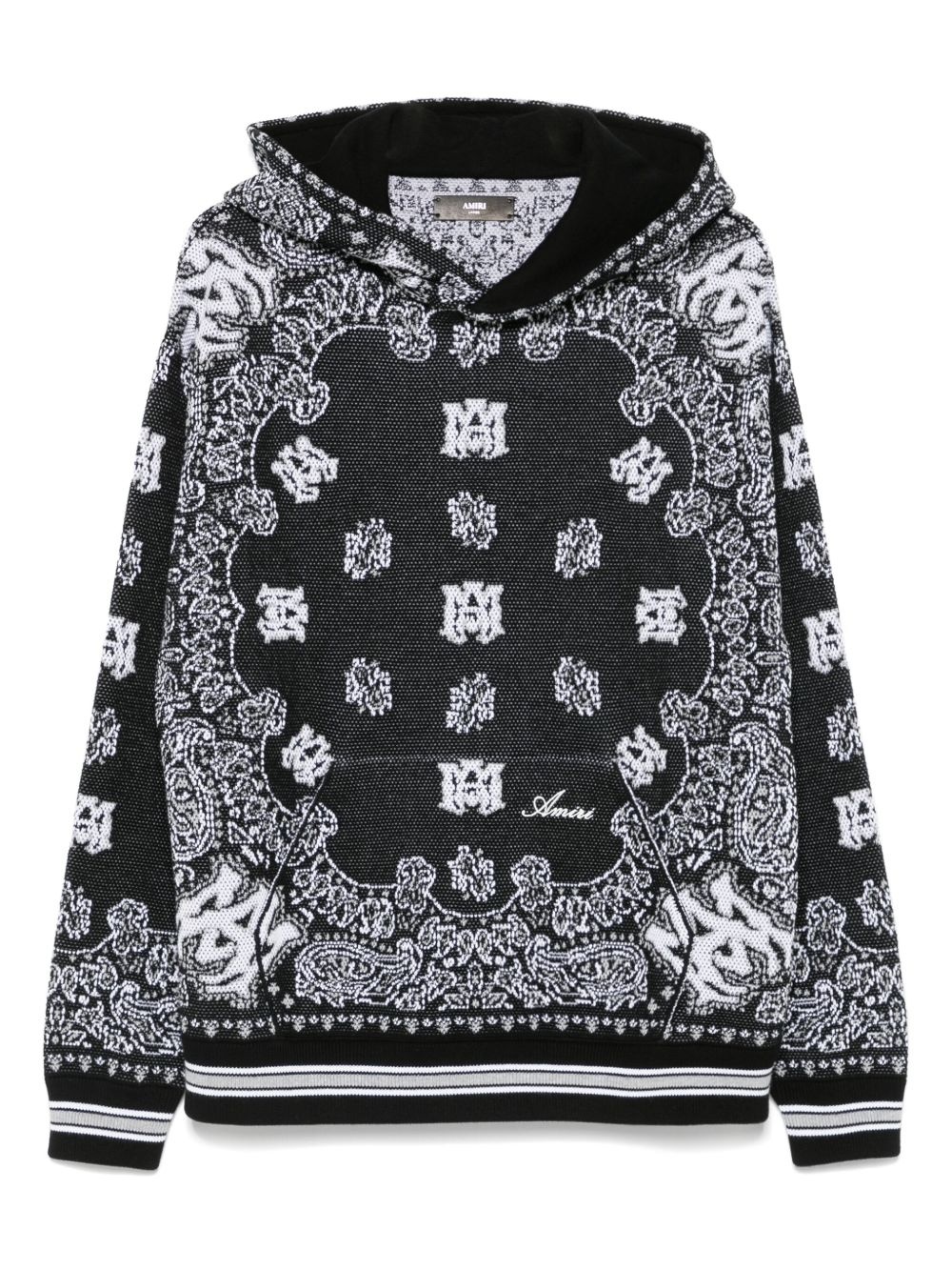 bandana hoodie Highlights - Black - Front pouch pocket - Classic hood - Long sleeves - Stripe detailing Made in Italy Composition Cotton 100% SIZE & FIT Model measurements Height 6 ft 2 in(1.88 m) Bust/Chest 37.4 in(95 cm) Hips 38.58 in(98 cm) Waist 31.1 in(79 cm) FittingInformation Designed to be unstructured, offering a loose fit throughout The ribbed hem offers a close, comfortable fit Made with a midweight knit, this piece offers some stretch Washing instructions Do Not Wash/Do Not Dry Clean