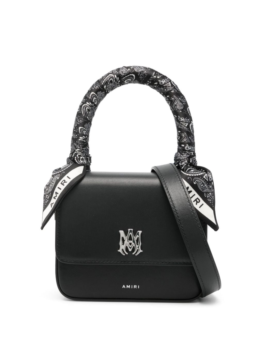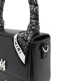 micro Ma cross body bag Highlights - Black/white - Calf leather - Smooth grain - Bandana print with logo print-embellishment at the handle - Silver-tone logo plaque to the front - Logo stamp to the front and rear - Logo-engraved silver-tone hardware - Internal logo stamp - Foldover top with magnetic fastening - Single scarf-wrapped top handle - Adjustable detachable shoulder strap - Main compartment - Internal zip-fastening pocket - Internal patch pocket - Leather lining Made in Italy Composition Outer: Calf Leather 100% SIZE & FIT Model measurements Height 5 ft 11 in(1.8 m) Bust/Chest 32.67 in(83 cm) Hips 36.22 in(92 cm) Waist 24.4 in(62 cm) Measurement DEPTH 2.36 in(6 cm) HANDLE 3.93 in(10 cm) HEIGHT 5.11 in(13 cm) STRAP 21.65 in(55 cm) WIDTH 5.9 in(15 cm)