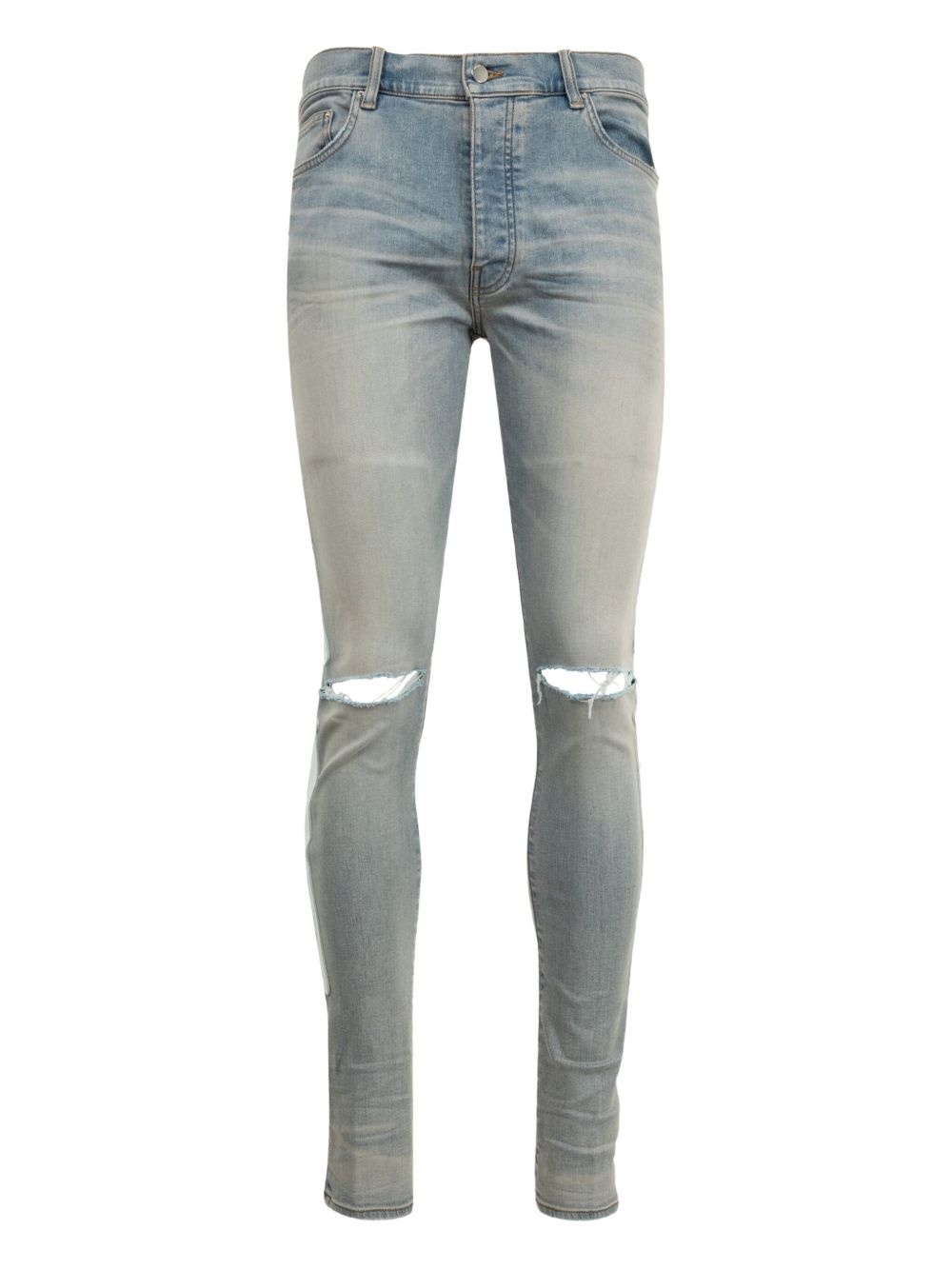 Bones-applique distressed skinny jeans Highlights - Light blue - Faded wash - Knee rips - Five pocket design - Belt loops Imported Composition Cotton 92%, Elastomultiester 6%, Elastane 2% SIZE & FIT FittingInformation Designed for a skinny fit, these jeans offer a close fit throughout Constructed from stretch denim, this piece offers a stretch fit with durability Washing instructions Read Manufacturer Guidelines