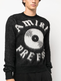 brushed-effect logo-print jumper Highlights - Black - Brushed effect - Logo print to the front - Crew neck - Long sleeves - Ribbed cuffs and hem - Straight hem Made in Italy Composition Mohair 45%, Polyamide 35%, Alpaca 15%, Wool 5% SIZE & FIT Model measurements Height 6 ft 2 in(1.88 m) Bust/Chest 37.79 in(96 cm) Hips 35.82 in(91 cm) Waist 29.92 in(76 cm) Measurement CHEST 46.45 in(118 cm) SLEEVE LENGTH 27.55 in(70 cm) LENGTH 25.59 in(65 cm) FittingInformation Designed for a relaxed fit, this piece allows for comfort and movement when worn Made with a midweight knit, this piece offers some stretch This piece fits true to size – take your usual size Washing instructions Hand Wash