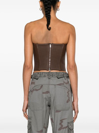 bustier-style leather top Highlights - Chocolate brown - Calf leather - Smooth grain - Pintuck detailing - Bustier-style neckline - Exposed rear zip fastening - Strapless - Straight hem - Full lining Made in Italy Composition Lining: Viscose 100% Outer: Calf Leather 100% SIZE & FIT Model measurements Height 5 ft 10 in(1.78 m) Bust/Chest 33.07 in(84 cm) Hips 36.61 in(93 cm) Waist 24.8 in(63 cm) FittingInformation Designed for a very close and sculpting fit Soft leather has a supple and smooth construction offering some flexibility This piece fits true to size – take your usual size