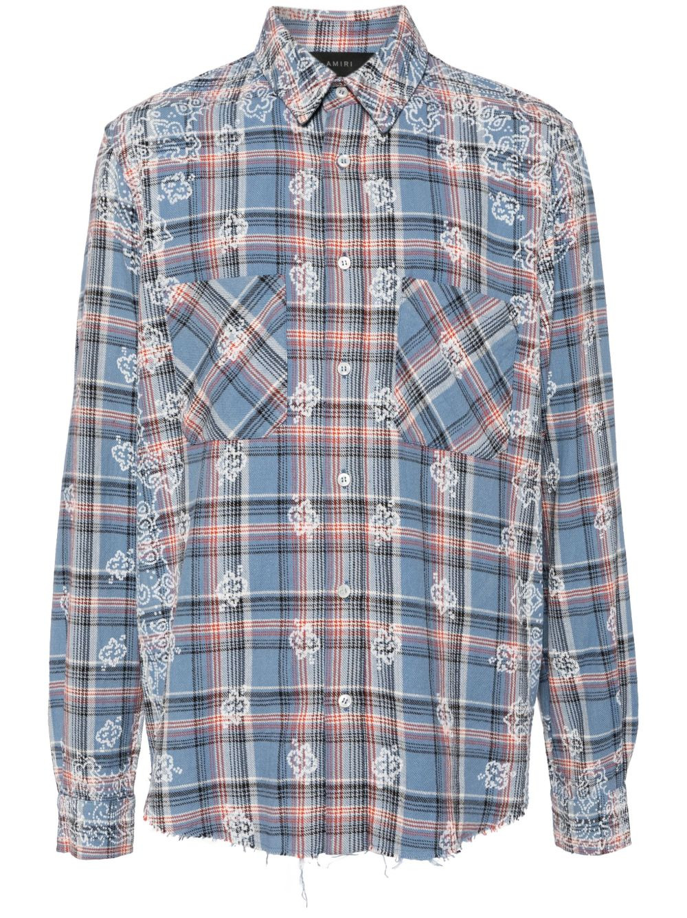 check-pattern cotton shirt Highlights - Powder blue - Cotton - Check pattern - Bandana print - Classic collar - Front button fastening - Two chest patch pockets - Long sleeves - Buttoned-cuff sleeves - Curved hem Made in Italy Composition Cotton 100% SIZE & FIT Model measurements Height 6 ft 2 in(1.87 m) Bust/Chest 33.07 in(84 cm) Hips 35.43 in(90 cm) Waist 26.77 in(68 cm) FittingInformation Designed for a regular fit, allowing for a comfortably loose fit throughout the body Made from a midweight non-stretch fabric This piece fits true to size – take your usual size Washing instructions Dry Clean Only