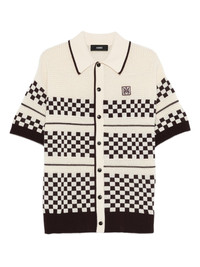 Checkered mesh logo-patch shirt Highlights - Brown/beige - Checkerboard pattern - Logo patch - Button fastening - Short sleeves - Collared Made in Italy Composition Wool 70%, Polyester 30% Washing instructions Hand Wash