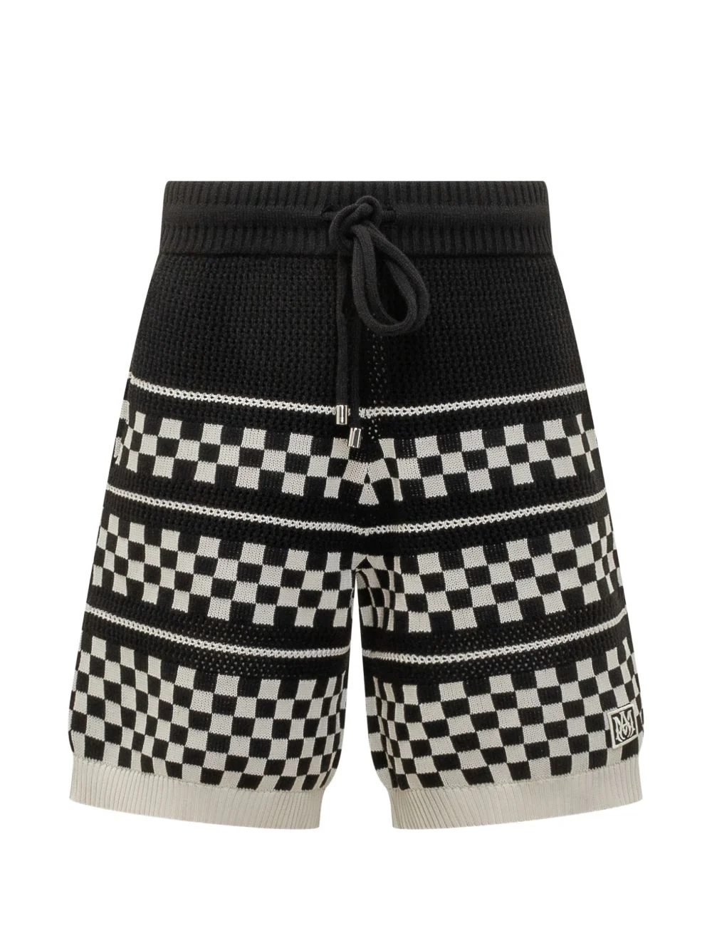 checkered shorts Highlights - Black - Checked pattern - Drawstring waist - Logo patch - Knitted hem Made in Italy Composition Wool 100% Washing instructions Read Manufacturer Guidelines