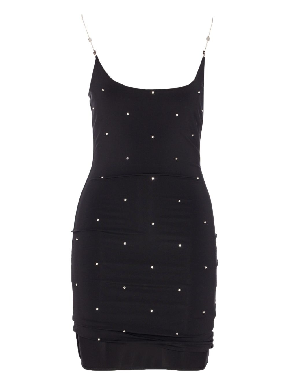 crystal-embellished mini dress Highlights - Black - Crystal embellishment - Chain straps - Back zip fastening - Scoop neck Made in Italy Composition Viscose 96%, Elastane 4%