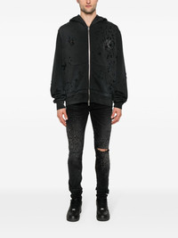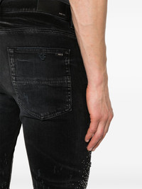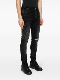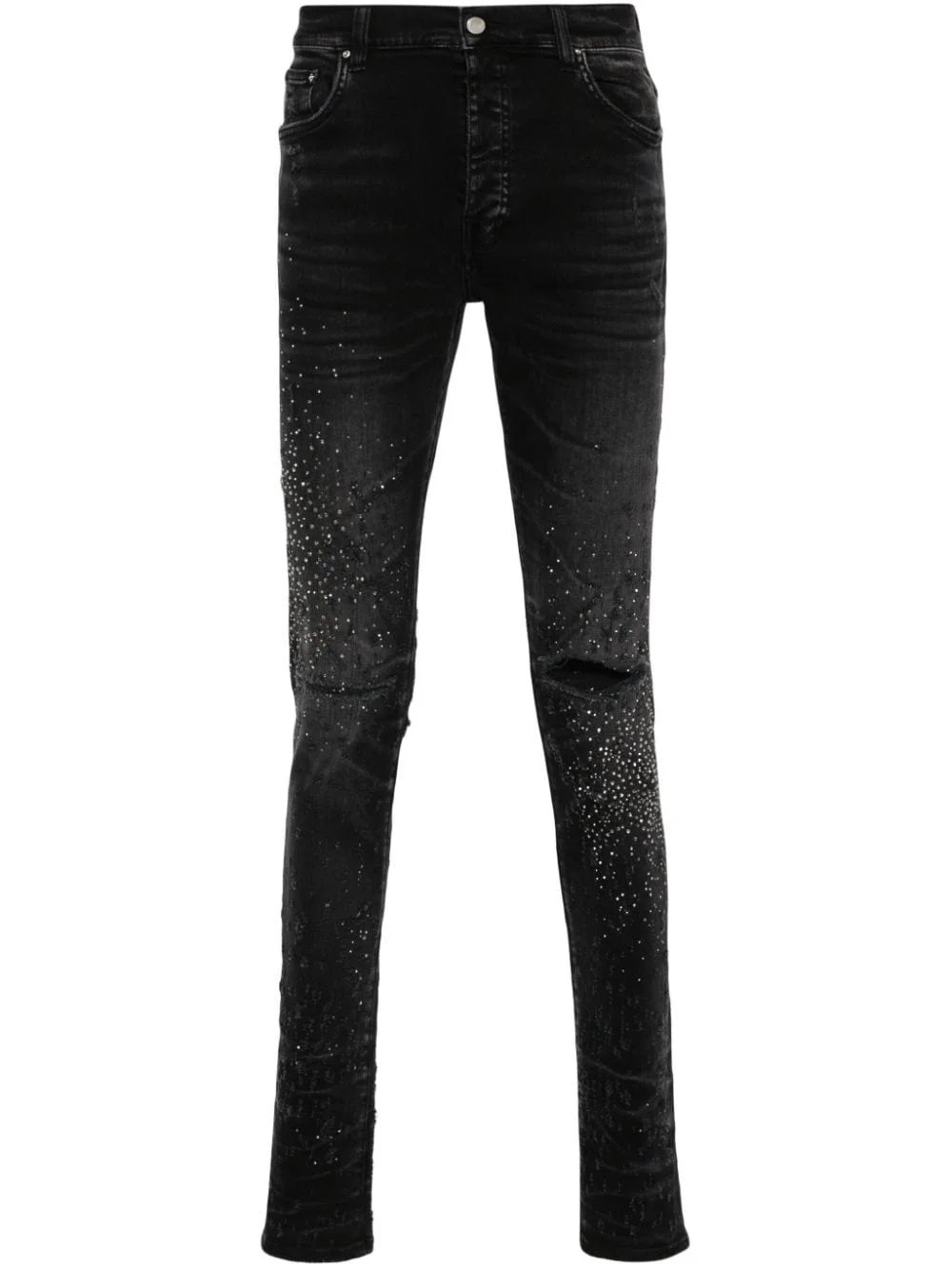 Crystal Shotgun skinny jeans Encrusted with glistening crystal embellishments, these AMIRI jeans are crafted from black stretch-cotton in the United States. Highlights - Black - Stretch-cotton - Denim - Stonewashed - Distressed effect - Rhinestone embellishment - Belt loops at the waist - Classic five pockets - Silver-tone logo plaque - Internal logo tag - Skinny cut - Front button and zip fastening Made in United States Composition Crystal 100%, Cotton 92%, Elastomultiester 6%, Elastane 2% SIZE & FIT Model measurements Height 6 ft 2 in(1.87 m) Bust/Chest 37.79 in(96 cm) Hips 37.79 in(96 cm) Waist 30.31 in(77 cm) FittingInformation Designed for a skinny fit, these jeans offer a close fit throughout Constructed from stretch denim, this piece offers a stretch fit with durability This piece fits true to size – take your usual size Washing instructions Dry Clean Only