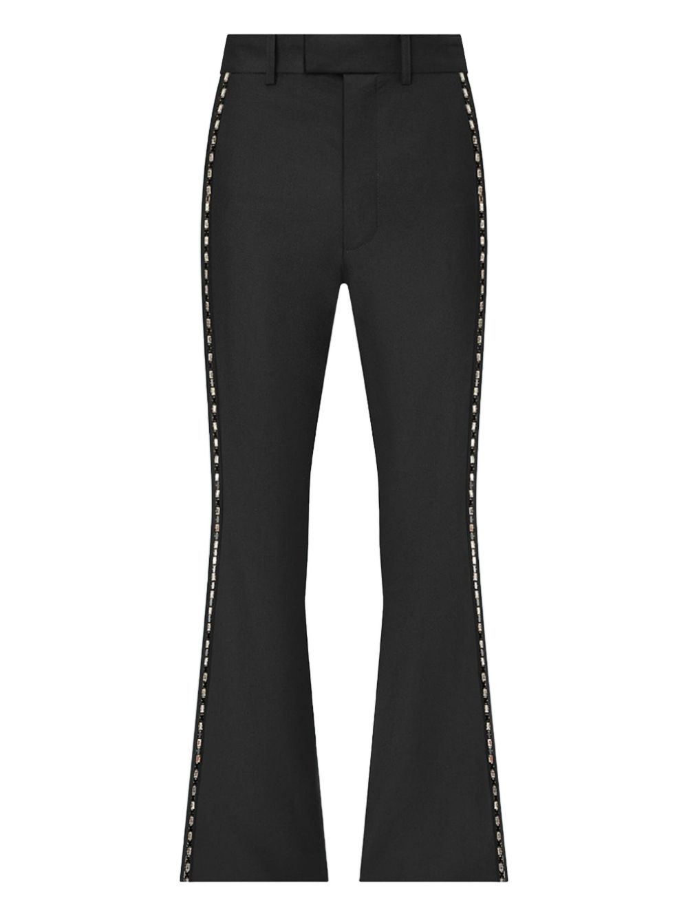 crystal-trim creased flared trousers Highlights - Black - Virgin wool - Side crystal-trim embellishment - Concealed hook-and-zip closure - Side-seam pockets Made in Italy Composition Virgin Wool 100% Washing instructions Read Manufacturer Guidelines