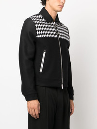 diamond-embroidered work jacket This work jacket from AMIRI plays with a harmonious fusion of monochromatic hues in its intricate design. Crafted from a wool blend with a simple front zip fastening, the diamond embroidered pattern at the chest adds decoration to the straightforward creation. Highlights - Black/white - Wool blend - Diamond pattern - Classic collar - Front zip fastening - Two front welt pockets - Long sleeves - Straight hem Made in Italy Composition Outer: Wool 75%, Viscose 25% Lining: Viscose 100% SIZE & FIT Model measurements Height 6 ft 2 in(1.88 m) Bust/Chest 37.79 in(96 cm) Hips 35.82 in(91 cm) Waist 29.92 in(76 cm) FittingInformation Designed for a boxy fit, intended for a loose fit throughout Made from a midweight non-stretch fabric This piece fits true to size – take your usual size Washing instructions Dry Clean Only