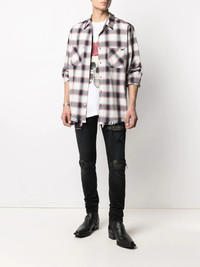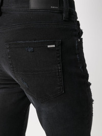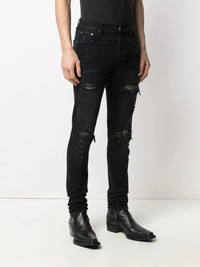 distressed skinny jeans black stretch cotton distressed effect skinny cut button fly fastening belt loops classic five pockets Made in Italy Composition Cotton 92%, Polyester 6%, Elastane 2% SIZE & FIT Measurement FRONT RISE 11.22 in(28.5 cm) INSIDE LEG 33.85 in(86 cm) HIPS 38.58 in(98 cm) Washing instructions Dry Clean Only
