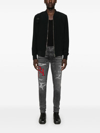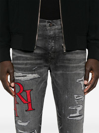 distressed skinny jeans Highlights - Grey - Cotton blend - Denim - Faded effect - Distressed effect - Ripped detailing - Embroidered logo at the leg - Mid-rise - Belt loops - Classic five pockets - Skinny cut - Button fly fastening Made in United States Composition Cotton 92%, Polyester 6%, Spandex/Elastane 2% SIZE & FIT Model measurements Height 6 ft 2 in(1.87 m) Bust/Chest 36.41 in(92.5 cm) Hips 37 in(94 cm) Waist 29.52 in(75 cm) FittingInformation Designed for a skinny fit, these jeans offer a close fit throughout Constructed from stretch denim, this piece offers a stretch fit with durability This piece fits true to size – take your usual size