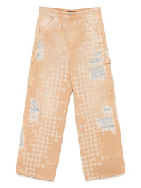 distressed straight-leg jeans Highlights - Camel brown - Front button and zip fastening - Classic five pockets - Belt loops - Logo patch to the rear Made in Italy Composition Outer: Cotton 100% Lining: Polyester 65%, Cotton 35% SIZE & FIT Model measurements Height 6 ft 2 in(1.87 m) Bust/Chest 38.18 in(97 cm) Hips 36.61 in(93 cm) Waist 29.13 in(74 cm) FittingInformation Designed with a wide leg, these jeans offer a loose and roomy fit Sturdy and hard-wearing, this denim piece offers no stretch