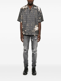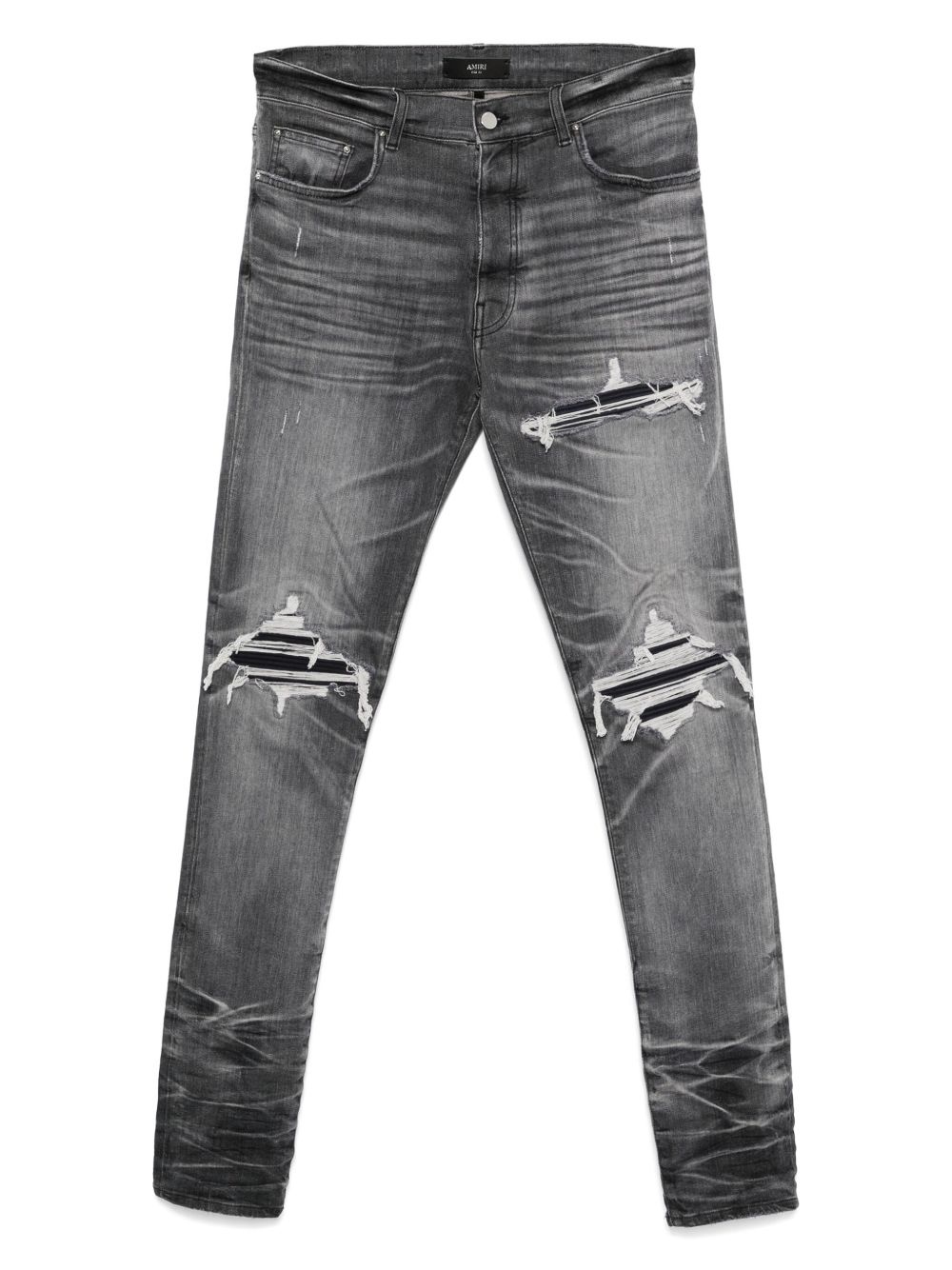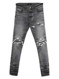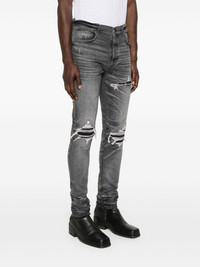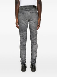 distressed straight-leg jeans Highlights - Grey - Front button and zip fastening - Classic five pockets - Ripped detailing - Logo patch to the rear Made in United States Composition Calf Leather 100%, Cotton 92%, Elastomultiester 6%, Elastane 2% SIZE & FIT Model measurements Height 6 ft 0 in(1.84 m) Bust/Chest 35.82 in(91 cm) Hips 37 in(94 cm) Waist 28.34 in(72 cm) FittingInformation Designed for a skinny fit, these jeans offer a close fit throughout Constructed from stretch denim, this piece offers a stretch fit with durability