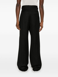 double-pleat trousers Highlights - Black - Wool blend - Tailored design - Pleat detailing - Concealed front button, hook and zip fastening - Belt loops - Two side inset pockets - Two rear button-fastening pockets - Wide leg Made in Italy Composition Outer: Wool 83%, Viscose 37% Lining: Viscose 100% SIZE & FIT Model measurements Height 6 ft 2 in(1.88 m) Bust/Chest 36.61 in(93 cm) Hips 35.82 in(91 cm) Waist 27.95 in(71 cm) FittingInformation Designed with a wide leg, offering a loose and roomy fit Made from a midweight non-stretch fabric