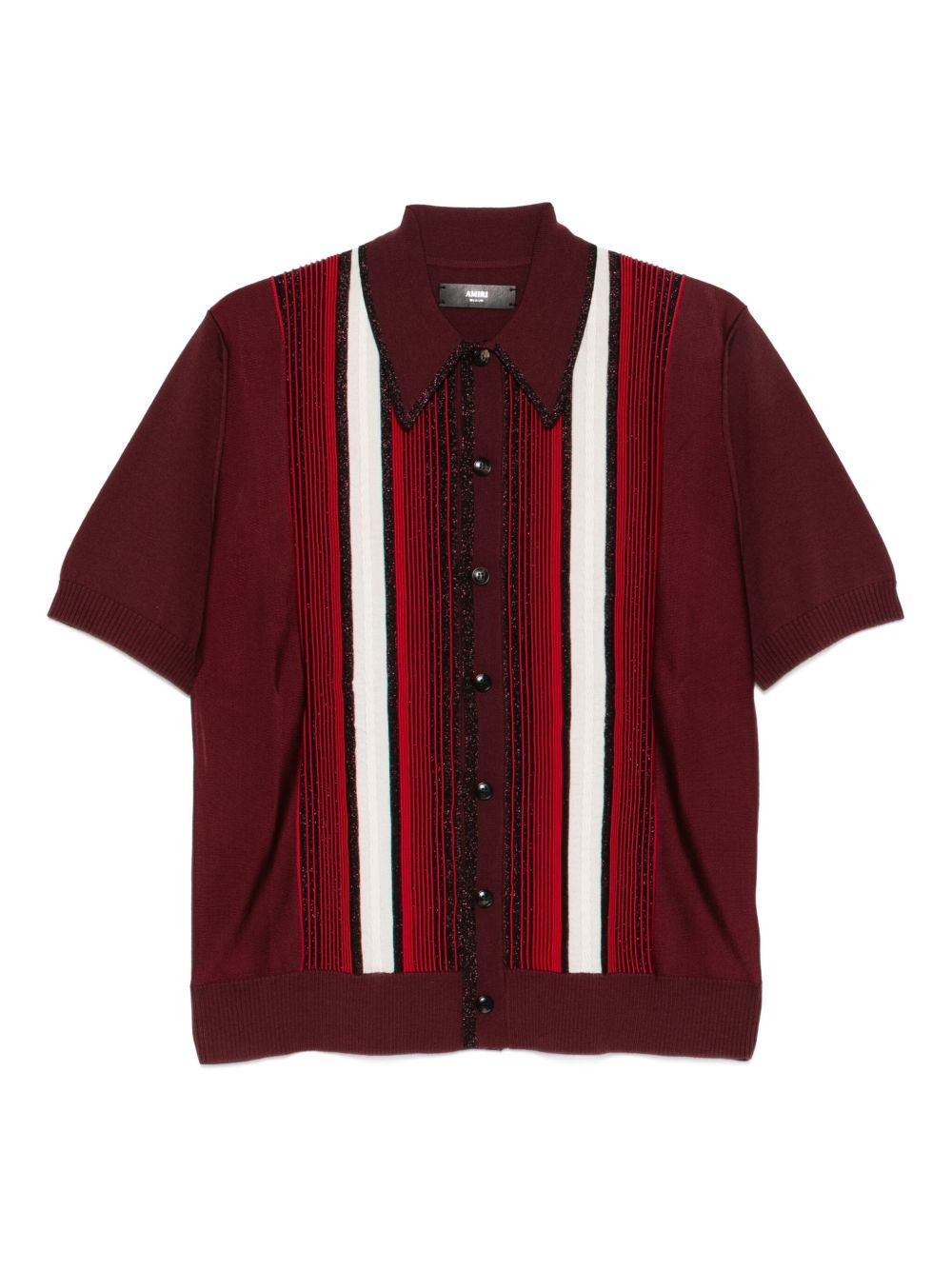 embellished striped shirt Highlights - Maroon - Short sleeves - Striped pattern - Embellished detailing - Polo collar - Button fastening Made in Italy Composition Viscose 100% SIZE & FIT Model measurements Height 6 ft 1 in(1.85 m) Bust/Chest 38.58 in(98 cm) Hips 37 in(94 cm) Waist 30.31 in(77 cm) Washing instructions Read Manufacturer Guidelines