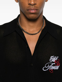 embroidered knit top Highlights - Black - Short sleeves - Ribbed knit - Button fastening - Embroidered detail Made in Italy Composition Viscose 70%, Polyester 30% SIZE & FIT Model measurements Height 6 ft 1 in(1.85 m) Bust/Chest 38.58 in(98 cm) Hips 37 in(94 cm) Waist 30.31 in(77 cm) Washing instructions Machine Wash