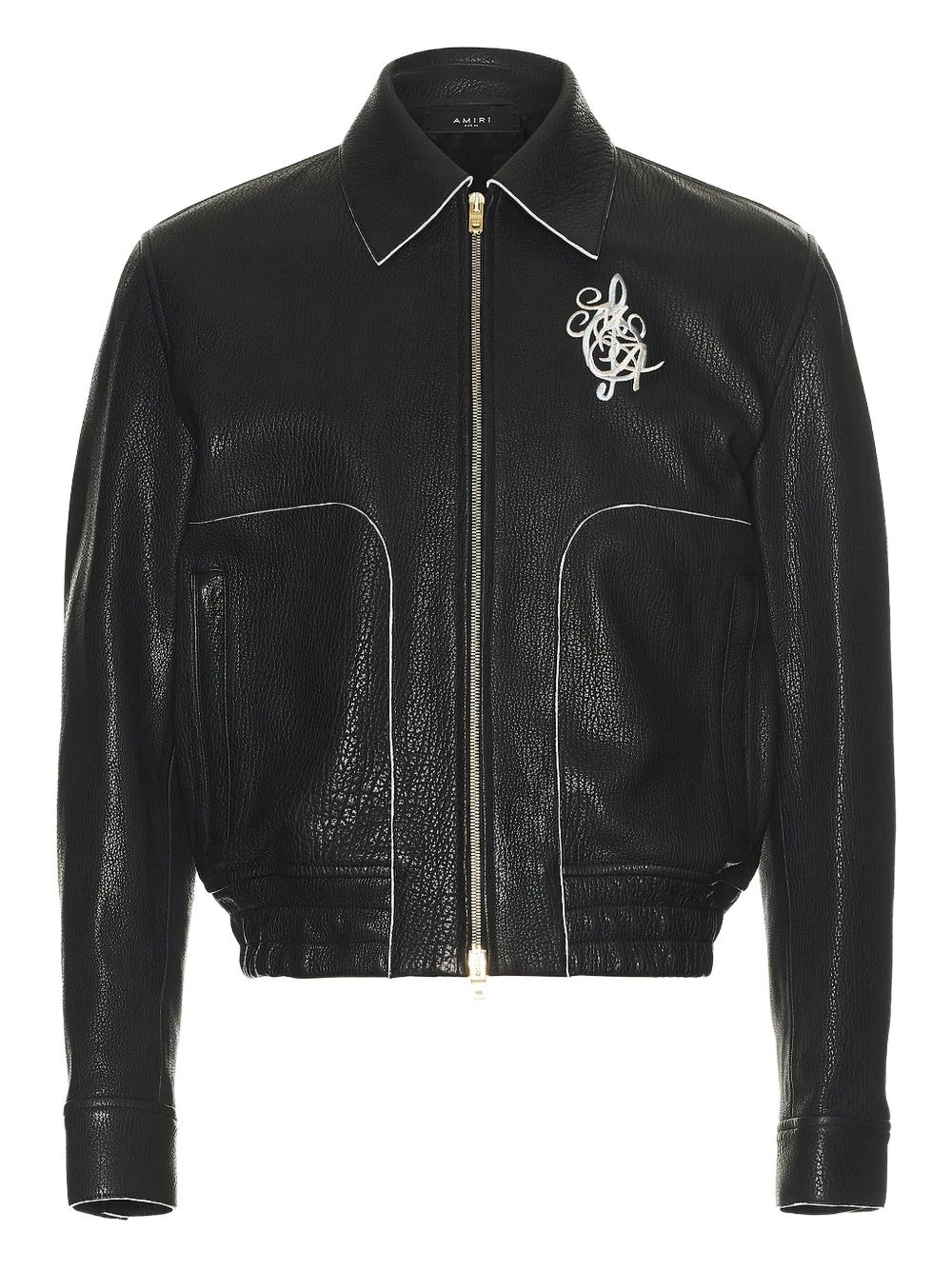 embroidered leather jacket Highlights - Black - Leather construction - Embroidered logo - Zip fastening - Elasticated hem - Contrasting trims Imported Composition Lining: Viscose 100% Outer: Leather 100% Washing instructions Read Manufacturer Guidelines