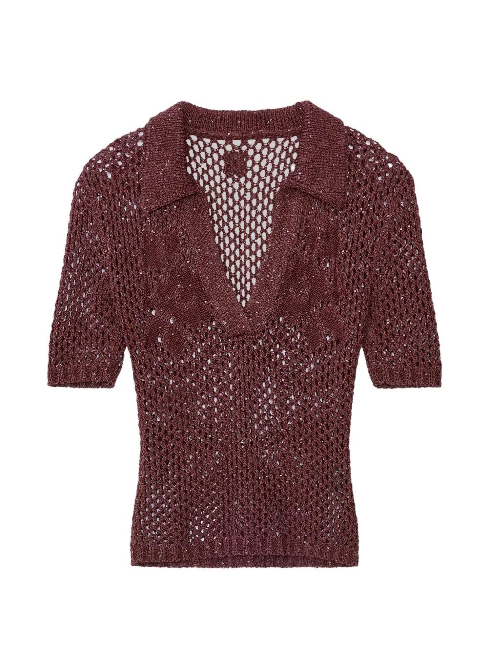 floral crochet polo top Highlights - Tobacco brown - Floral print - Crochet knit - Polo collar - V-neck - Short sleeves Made in Italy Composition Polyamide 100% Washing instructions Read Manufacturer Guidelines