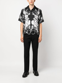 floral-print silk shirt Highlights - Black/white - Silk - All-over floral print - Logo print to the front - Camp collar - Front button fastening - Short sleeves - Straight hem Made in Italy Composition Silk 100% SIZE & FIT Model measurements Height 6 ft 2 in(1.87 m) Bust/Chest 36.41 in(92.5 cm) Hips 35.43 in(90 cm) Waist 29.52 in(75 cm) Measurement CHEST 40.98 in(104.1 cm) SLEEVE LENGTH 10.98 in(27.9 cm) Shoulder Width 17 in(43.2 cm) LENGTH 25.51 in(64.8 cm) WAIST 40.98 in(104.1 cm) FittingInformation Designed for a boxy fit, intended for a loose fit throughout Made from a lightweight non-stretch fabric This piece fits true to size – take your usual size Washing instructions Dry Clean Only