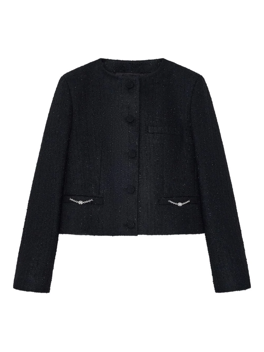 glitter-detailed jacket Highlights - Black - Chain-link detailing - Button fastening - Chest pocket - Collarless Made in Italy Composition Polyester 100% Washing instructions Read Manufacturer Guidelines