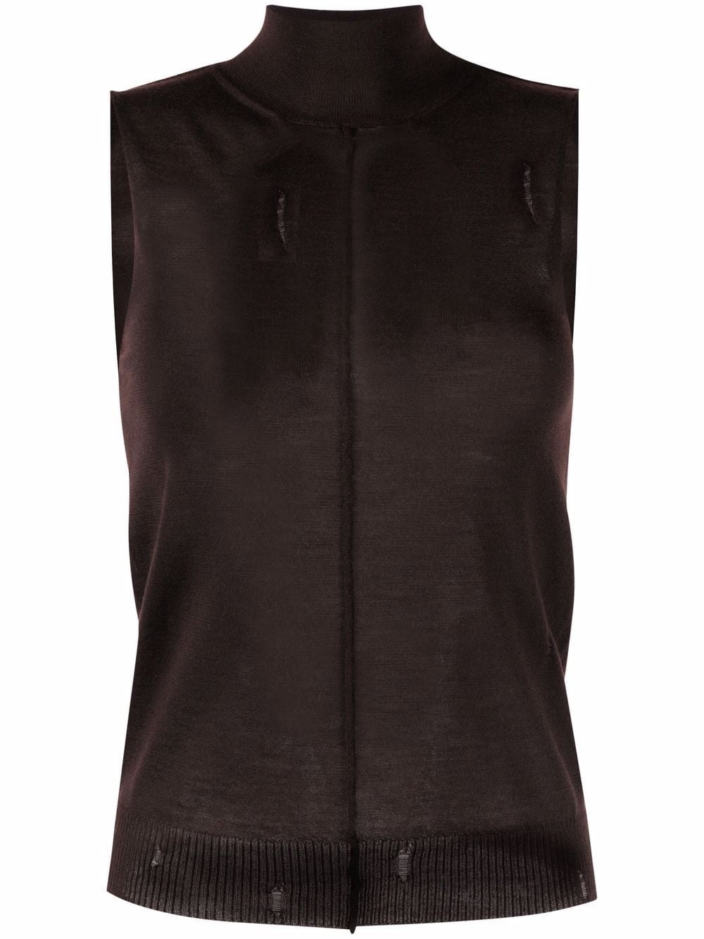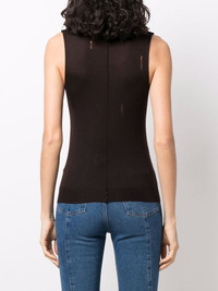 high neck cashmere vest dark-brown cashmere high neck sleeveless fine knit Made in Italy Composition Cashmere 100% SIZE & FIT Model measurements Height 5 ft 10 in(1.79 m) Bust/Chest 33.07 in(84 cm) Hips 35.82 in(91 cm) Waist 24.01 in(61 cm) FittingInformation This piece fits true to size. We recommend you get your regular size Cut for a slim fit Made with a lightweight fabric Washing instructions Hand Wash