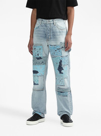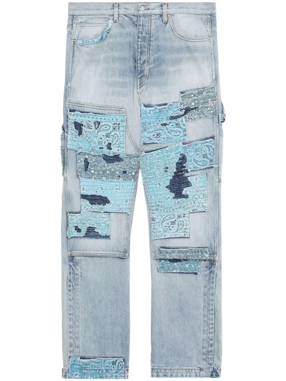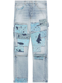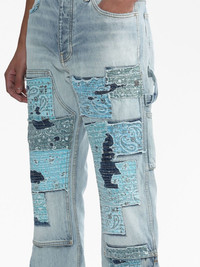 high-rise patchwork-detail jeans Highlights - Light blue - Cotton - Straight leg - Panelled design - Patchwork detailing - Paisley print - Classic five pockets - Logo patch to the rear - Concealed fly and button fastening Made in United States Composition Body: Cotton 100% SIZE & FIT Measurement FRONT RISE 11.49 in(29.2 cm) INSIDE LEG 32.99 in(83.8 cm) BACK RISE 12.99 in(33 cm) HIPS 37.99 in(96.5 cm) Hem Width 17 in(43.2 cm) WAIST 32.99 in(83.8 cm)