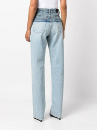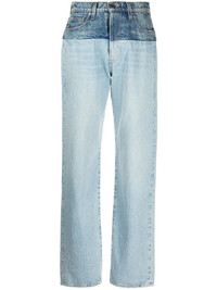high-rise straight-leg jeans blue cotton light wash panelled design belt loops front button and zip fastening classic five pockets high-waisted straight leg Made in Italy Composition Outer: Cotton 100% SIZE & FIT Model measurements Height 5 ft 10 in(1.77 m) Bust/Chest 31.88 in(81 cm) Hips 34.64 in(88 cm) Waist 24.01 in(61 cm) FittingInformation This piece fits true to size. We recommend you get your regular size Designed to be fitted at the waist and hips, loose over the leg Made with a mid-weight non-stretch fabric Washing instructions Dry Clean Only