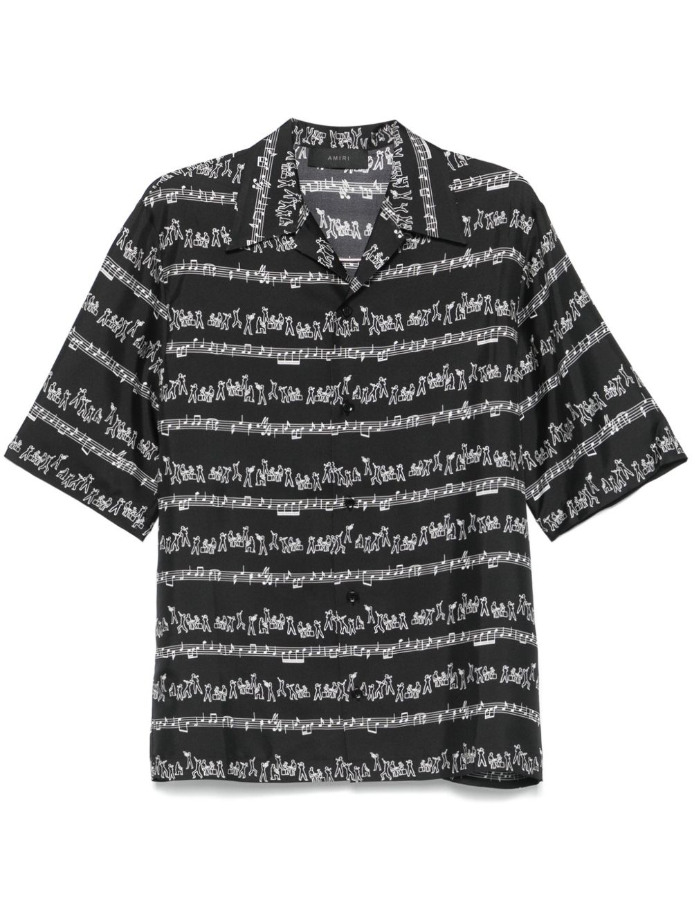 Jazz Band shirt Highlights - Black - Front button fastening - All-over graphic print - Camp collar - Short sleeves Made in Italy Composition Silk 100% SIZE & FIT Model measurements Height 6 ft 2 in(1.87 m) Bust/Chest 36.41 in(92.5 cm) Hips 35.43 in(90 cm) Waist 29.52 in(75 cm) FittingInformation Designed to be unstructured, offering a loose fit throughout Made from a lightweight non-stretch fabric