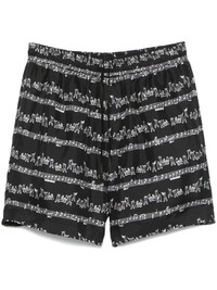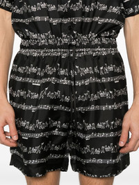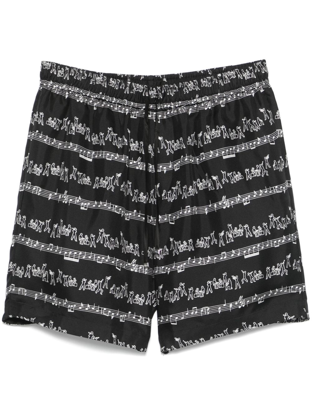 Jazz Band shorts Highlights - Black - Elasticated drawstring waistband - Two side slit pockets - All-over graphic print Made in Italy Composition Silk 100% SIZE & FIT Model measurements Height 6 ft 2 in(1.87 m) Bust/Chest 36.41 in(92.5 cm) Hips 35.43 in(90 cm) Waist 29.52 in(75 cm) FittingInformation Designed for relaxed fit, offering a comfortable loose fit over the leg The elasticated waist allows for a comfortable fit Made from a lightweight non-stretch fabric