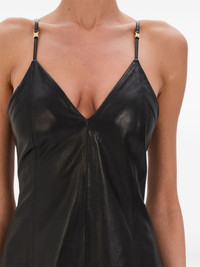leather V-neck mini dress Highlights - Black - Leather - V-neck - Spaghetti straps - Gold-tone hardware Imported Composition Leather 100% Washing instructions Read Manufacturer Guidelines