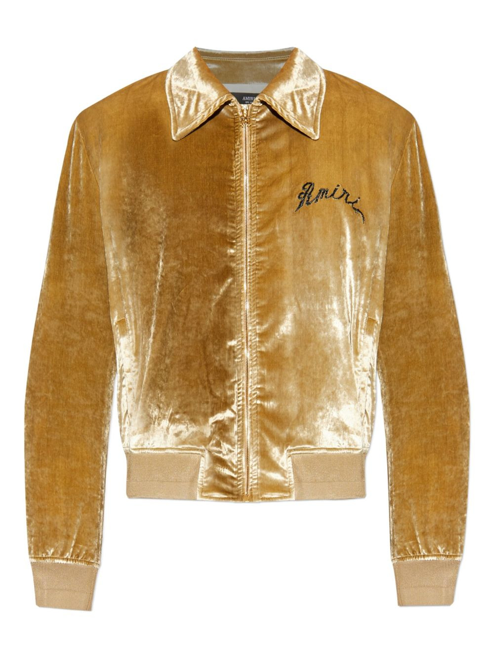 logo-embroidered jacket Highlights - Yellow - Velvet texture - Embroidered lettering - Beaded embellishment - Zip fastening - Ribbed hem Made in Italy Composition Viscose 100% Washing instructions Read Manufacturer Guidelines