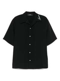logo-embroidered shirt Highlights - Black - Front button fastening - Camp collar - Short sleeves - Straight hem Made in Italy Composition Polyester 100% SIZE & FIT Model measurements Height 6 ft 2 in(1.88 m) Bust/Chest 37.4 in(95 cm) Hips 38.58 in(98 cm) Waist 31.1 in(79 cm) FittingInformation Designed for a relaxed fit, this piece allows for comfort and movement when worn Made from a midweight non-stretch fabric Washing instructions Dry Clean Only