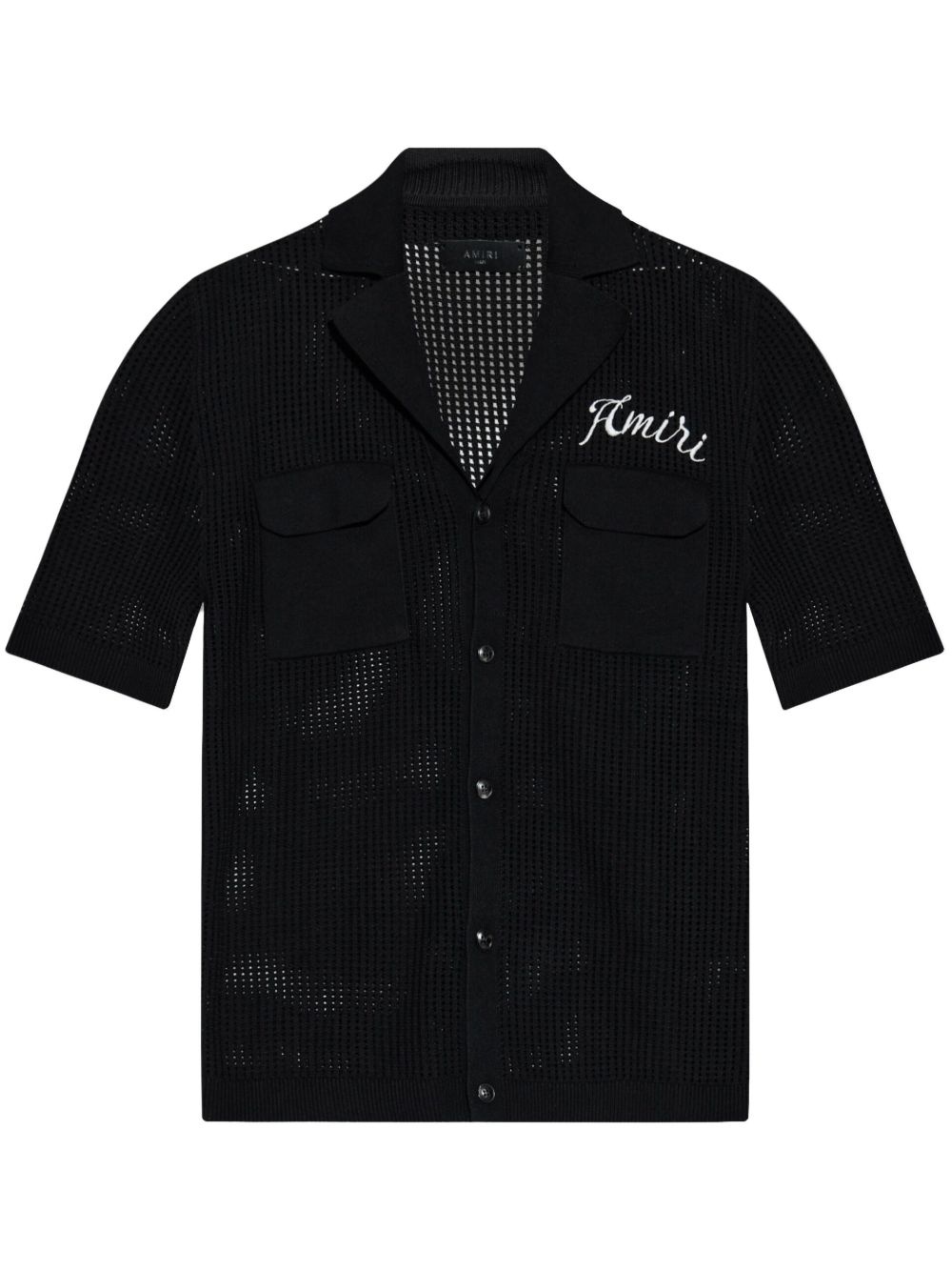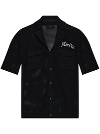 Camp-Collar Logo-Embroidered Open-Knit Cotton Shirt