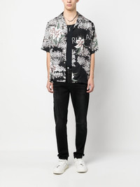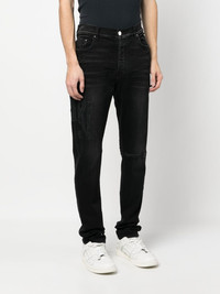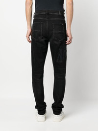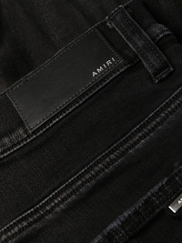 logo-embroidered skinny-cut jeans black cotton blend denim logo patch to the rear belt loops concealed fly and button fastening classic five pockets slim cut Made in United States Composition Cotton 92%, Polyester 6%, Spandex/Elastane 2% Washing instructions Dry Clean Only