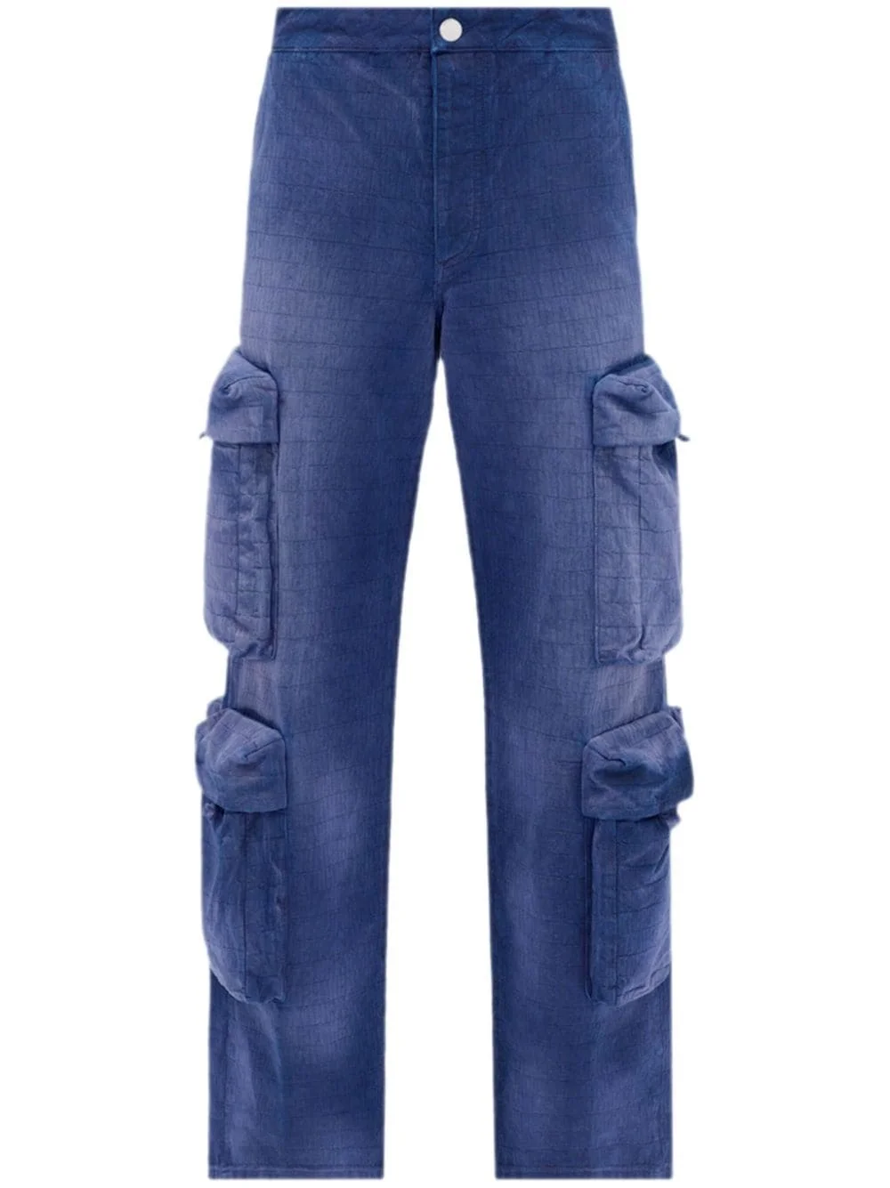 logo-jacquard cotton cargo jeans Highlights - Blue - Cotton - Denim - Washed - Jacquard logo motif - Logo patch to the rear - Low-rise - Belt loops - Front button fastening - Multiple cargo pockets - Two rear flap pockets - Straight hem Imported Composition Cotton 100% Washing instructions Read Manufacturer Guidelines