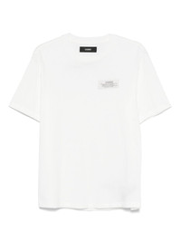 logo-patch T-shirt Highlights - White - Crew neck - Short sleeves - Text print Made in Italy Composition Cotton 100% SIZE & FIT Model measurements Height 6 ft 2 in(1.88 m) Bust/Chest 36.61 in(93 cm) Hips 35.82 in(91 cm) Waist 27.95 in(71 cm) FittingInformation Designed for a relaxed fit, this piece allows for comfort and movement when worn Made from a midweight non-stretch fabric, this piece offers minimal elasticity when worn Washing instructions Dry Clean Only