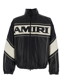 logo-print leather jacket Highlights - Black - Logo print - Zip fastening - High neck - Long sleeves - Ribbed hem Made in Italy Composition Calf Leather 100% Washing instructions Specialist Cleaning