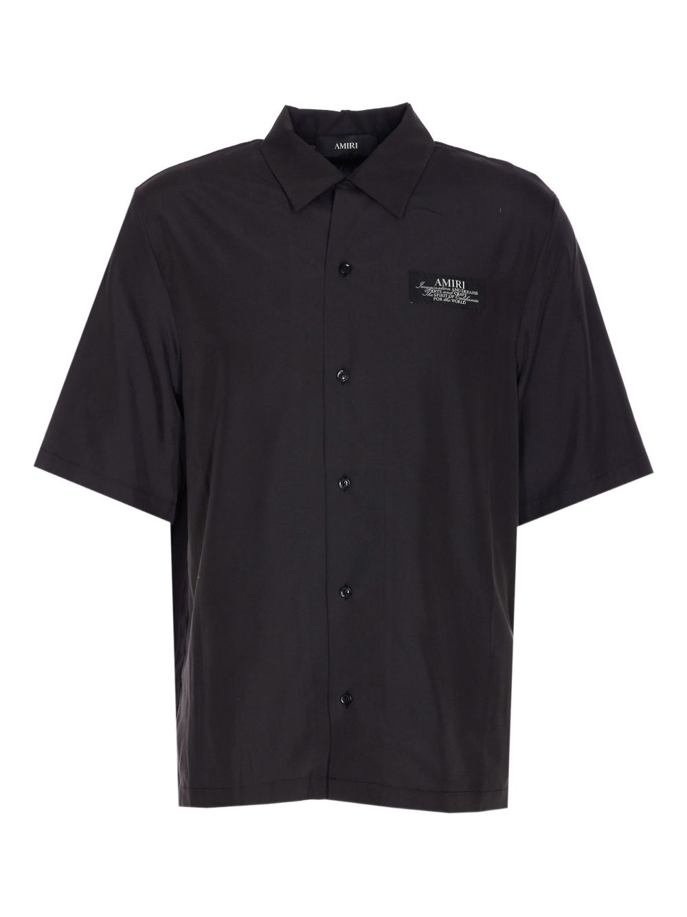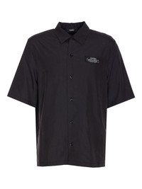 logo-print shirt Highlights - Black - Front button fastening - Classic collar - Short sleeves - Straight hem Made in Italy Composition Modal 60%, Polyester 40%