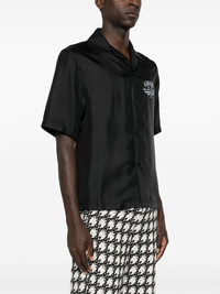 logo-print silk shirt Highlights - Black - Silk - Satin finish - Lightweight construction - Camp collar - Short sleeves - Logo print at the chest and to the rear - Straight hem - Front button fastening Made in Italy Composition Silk 100% SIZE & FIT Model measurements Height 6 ft 2 in(1.87 m) Bust/Chest 36.41 in(92.5 cm) Hips 37 in(94 cm) Waist 29.52 in(75 cm) Measurement CHEST 46.45 in(118 cm) LENGTH 27.55 in(70 cm) WAIST 45.66 in(116 cm) SLEEVE LENGTH 11.81 in(30 cm) Shoulder Width 18.11 in(46 cm) FittingInformation Designed for a boxy fit, intended for a loose fit throughout Made from a lightweight non-stretch fabric This piece fits true to size – take your usual size Washing instructions Dry Clean Only