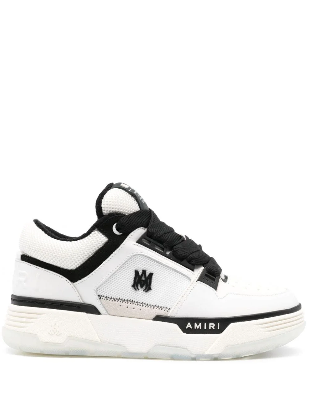MA-1 panelled sneakers Made from panels of breathable mesh and durable leather, AMIRI's MA-1 sneakers seamlessly blend comfort and style. In a white and black colourway, they are finished with translucent rubber soles and the label's logo at the outer walls. Highlights - White/black - Panelled design - Mesh panelling - Logo plaque - Decorative stitching - Round toe - Perforated toebox - Logo patch at the tongue - Oversize tongue - Branded heel counter - Padded ankle - Branded insole - Full lining - Chunky rubber sole - Front lace-up fastening Imported Composition Outer: Fabric 100%, Leather 100% Sole: Rubber 100% Lining: Fabric 100% SIZE & FIT Measurement HEEL 1.96 in(5 cm) Sole height 1.37 in(3.5 cm)