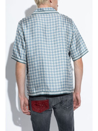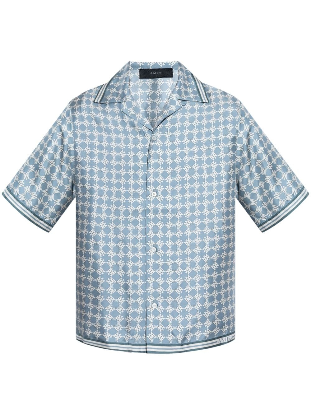 Ma Quad bowling shirt Highlights - Light blue/white - Silk - Front button fastening - Monogram pattern - Cuban collar - Short sleeves - Stripe detailing - Straight hem Made in Italy Composition Silk 100% SIZE & FIT FittingInformation Designed for a regular fit, allowing for a comfortably loose fit throughout the body Made from a lightweight non-stretch fabric