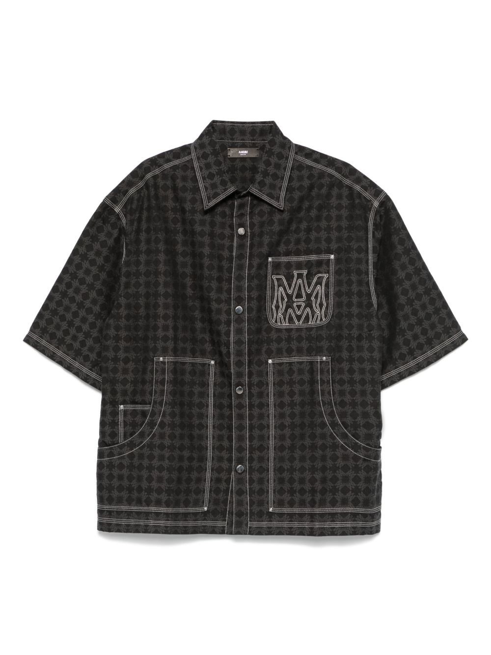 MA Quad shirt Highlights - Black - Front press-stud fastening - Chest patch pocket - Two rounded pockets to the sides - Embroidered logo Made in Italy Composition Cotton 82%, Linen/Flax 18% SIZE & FIT Model measurements Height 6 ft 2 in(1.88 m) Bust/Chest 37.4 in(95 cm) Hips 37.79 in(96 cm) Waist 30.31 in(77 cm) FittingInformation Designed to be unstructured, offering a loose fit throughout Made from a midweight non-stretch fabric