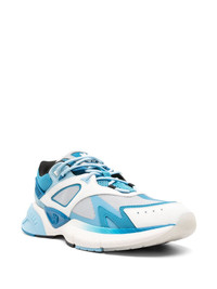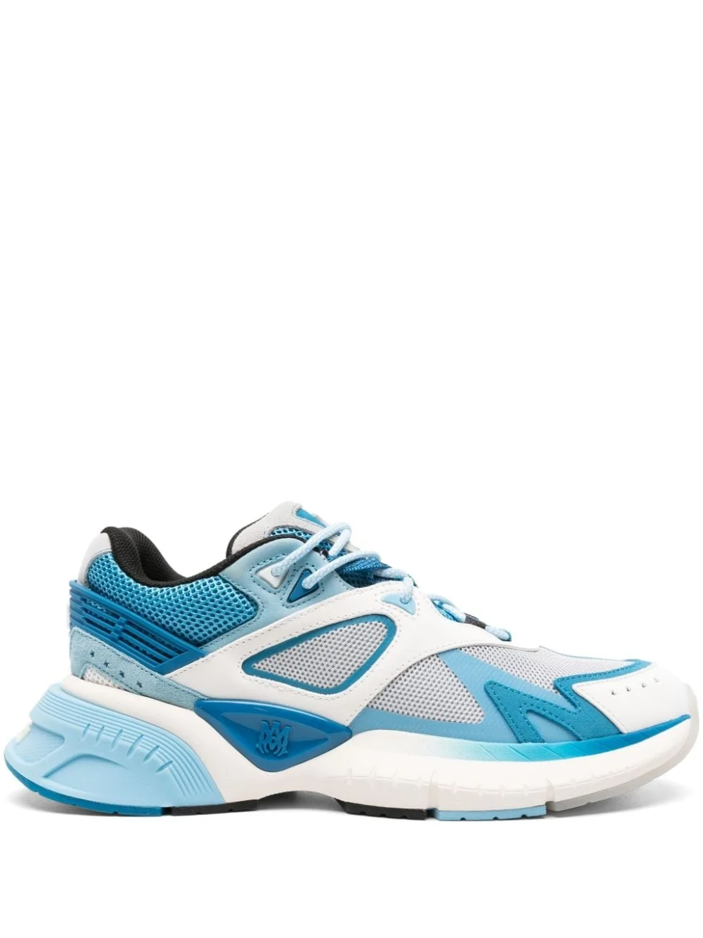 MA Runner panelled sneakers Made from panels of breathable mesh and durable leather, AMIRI's MA Runner sneakers seamlessly blend comfort and style. In shades of white, blue and grey, they sit atop a chunky rubber sole. Highlights - Cerulean blue/white - Mesh design - Multi-panel design - Leather panel corners - Suede panels - Embossed logo to the front - Logo-embossed tongue - Embossed logo to the side - Branded heel counter - Front lace-up fastening - Round toe - Branded insole - Chunky rubber sole Imported Composition Lining: Fabric 100% Outer: Fabric 100%, Calf Leather 100% Sole: Rubber 100% SIZE & FIT Measurement HEEL 2.16 in(5.5 cm) Sole height 1.37 in(3.5 cm)