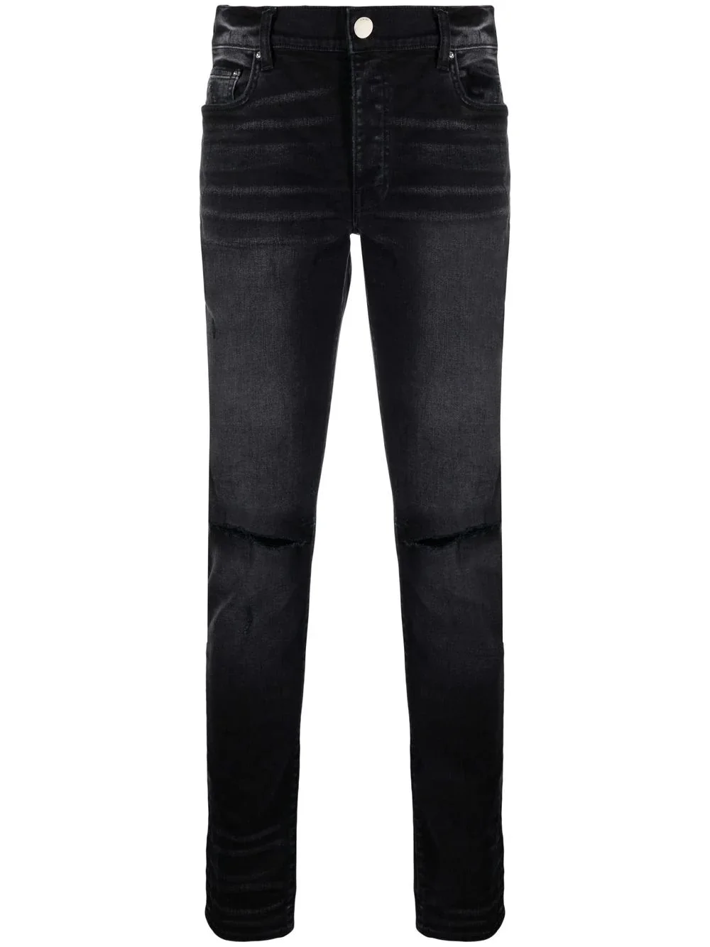 mid-rise slim fit jeans aged black stretch-cotton denim faded effect ripped detailing mid-rise button fly fastening belt loops classic five pockets slim cut Made in United States Composition Cotton 92%, Polyester 6%, Spandex/Elastane 2% Washing instructions Dry Clean Only