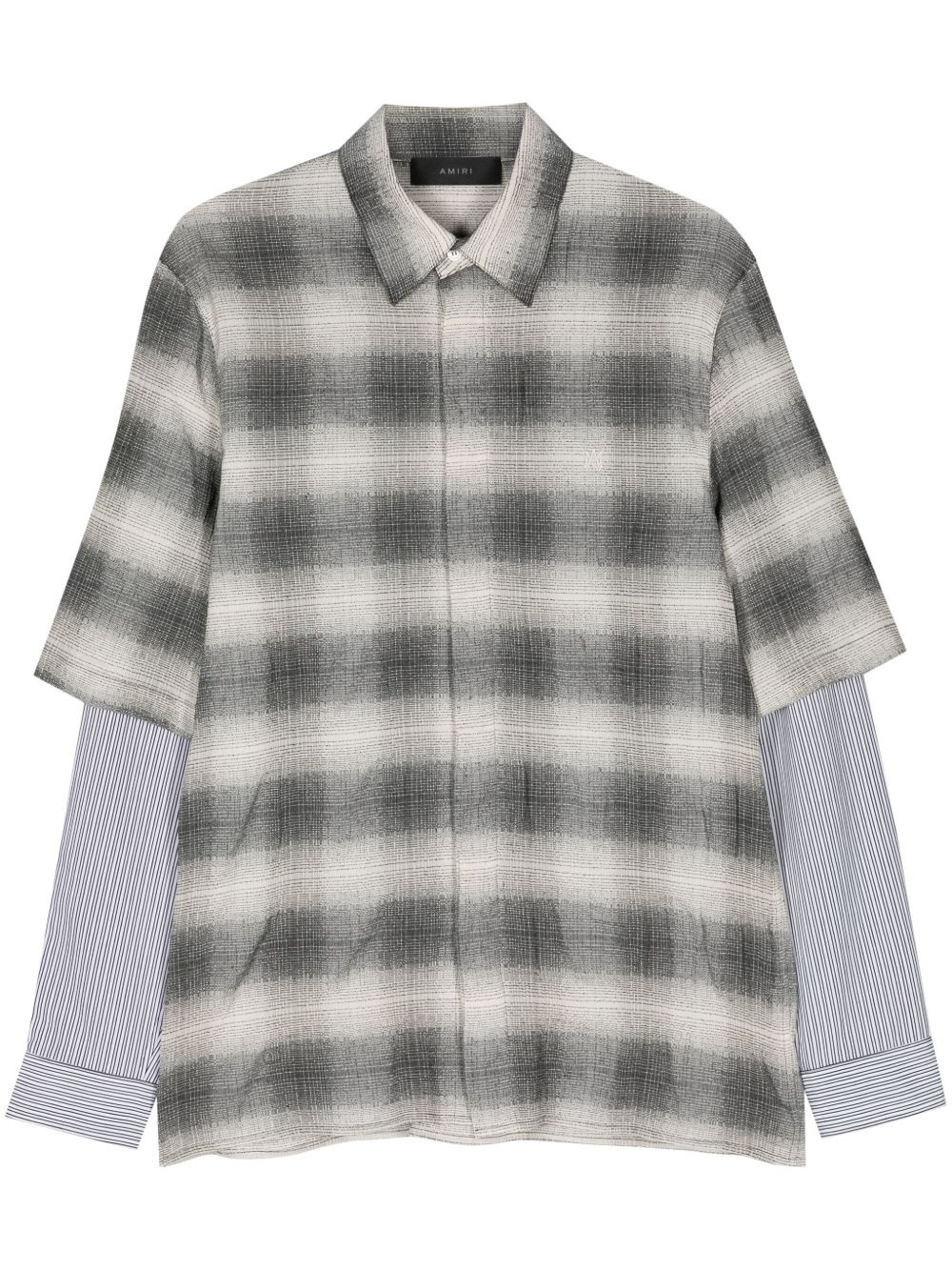 mix-print layered shirt Highlights - Black/grey/white - Cotton blend - Plaid check pattern - Vertical stripe pattern - Metallic threading - Classic collar - Concealed front button fastening - Drop shoulder - Short-sleeve overlay - Long sleeves with buttoned cuffs - Straight hem Made in Italy Composition Outer: Cotton 80%, Polyester 20% Lining: Viscose 81%, Polyamide 18%, Polyester 1% SIZE & FIT FittingInformation Designed to be unstructured, offering a loose fit throughout Made from a midweight non-stretch fabric This piece fits true to size – take your usual size
