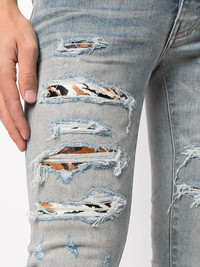 MX1 distressed skinny jeans clay blue cotton faded effect distressed effect ripped detailing tiger print silver-tone logo plaque button fly fastening belt loops classic five pockets skinny cut Made in Italy Composition Outer: Cotton 100% SIZE & FIT Model measurements Height 6 ft 2 in(1.88 m) Bust/Chest 38.18 in(97 cm) Hips 37 in(94 cm) Waist 29.92 in(76 cm) Measurement FRONT RISE 10.98 in(27.9 cm) INSIDE LEG 33.5 in(85.1 cm) BACK RISE 14.48 in(36.8 cm) HIPS 34.01 in(86.4 cm) Hem Width 10.98 in(27.9 cm) WAIST 30 in(76.2 cm)