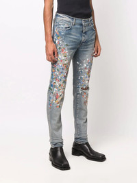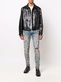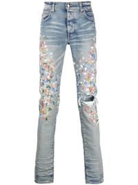 paint-splattered skinny jeans