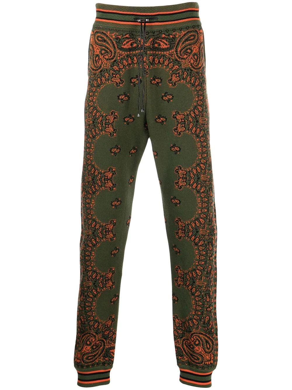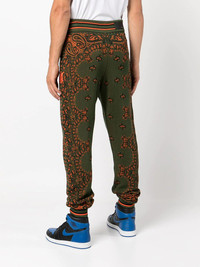 paisley-print track pants AMIRI's track pants are decorated with a paisley pattern that offers a romantic feel to the classic sporty style. It's spun from cotton blended with touches of cashmere for a plush handle. Made in Italy Composition Body: Cotton 89%, Cashmere 11% SIZE & FIT Model measurements Height 6 ft 2 in(1.88 m) Bust/Chest 38.18 in(97 cm) Hips 37 in(94 cm) Waist 29.92 in(76 cm) Measurement FRONT RISE 15.35 in(39 cm) INSIDE LEG 30.31 in(77 cm) WAIST 29.92 in(76 cm) FittingInformation This piece fits true to size. We recommend you get your regular size Designed to be loose over the leg with a fitted waist and hem Made with a mid-weight fabric Washing instructions Dry Clean Only